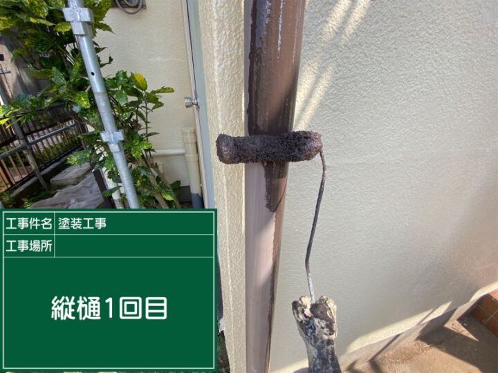 縦樋も塗っていきます。