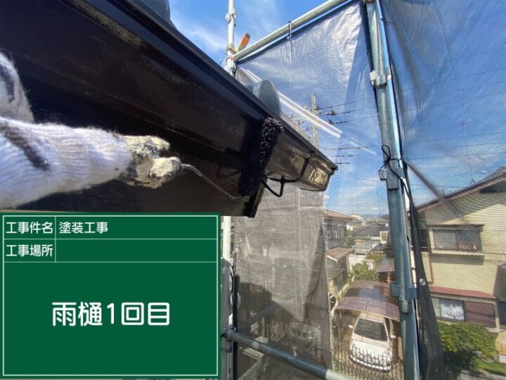 破風板と樋は屋根周りという近い場所なので一緒に塗装します。