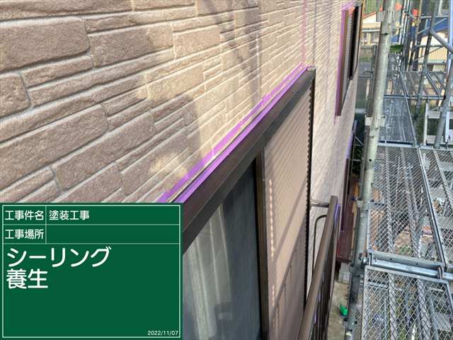 シーリング施工箇所にマスキングテープで養生をしていきます。