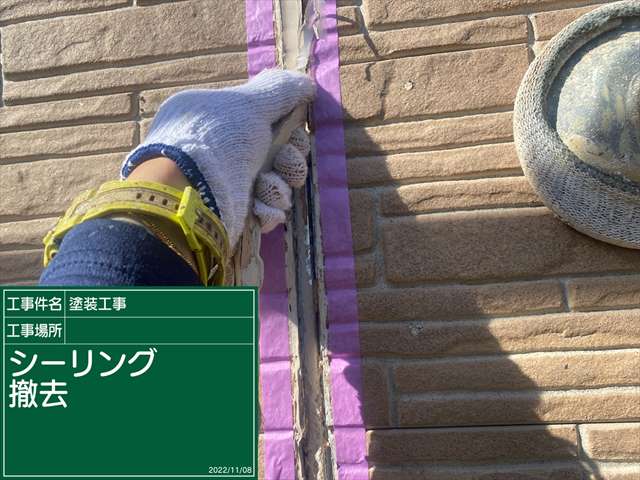 古いシーリングを撤去して、ボンドブレーカーを貼っていきます。