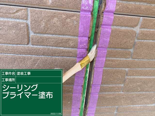 プライマーを塗布して、新しいシーリングを打ち込んでいきます。