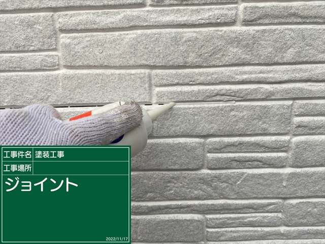 右の写真は別の現場の写真ですが、新しいシーリングを打ち込む作業の参考にしてください!