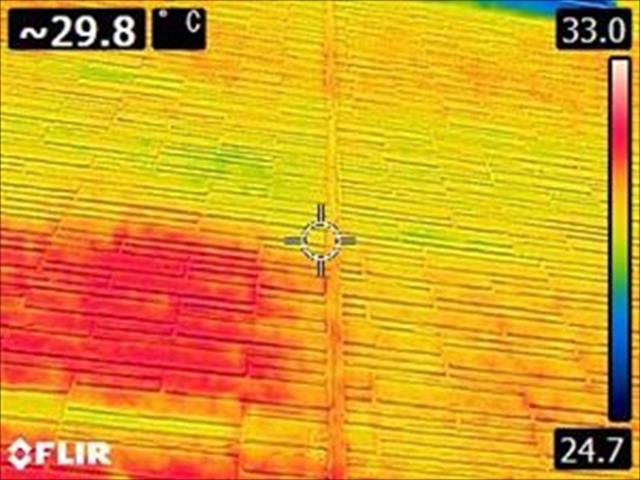 石岡市の雨漏り現場、赤外線サーモグラフィーで内部の状態を確認していきます。