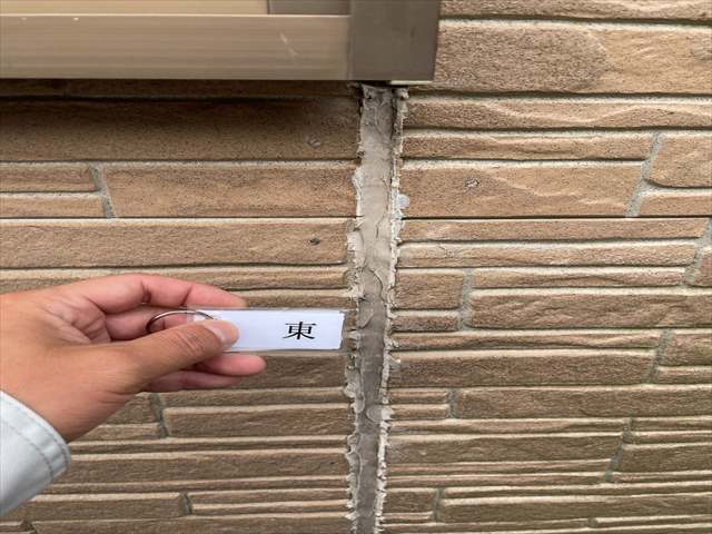 石岡市の雨漏り現場、外壁シーリングの打ち替えです。