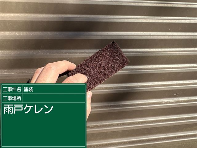 石岡市現場、雨戸はケレン作業をおこなってから塗装をおこないます。