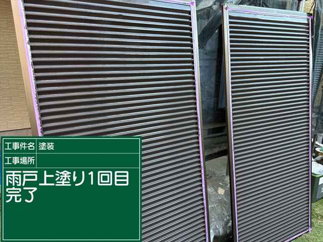 雨戸はデコボコとしているので、塗料溜まりでないよう気をつけていきました。