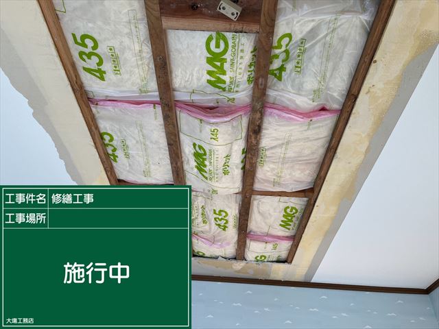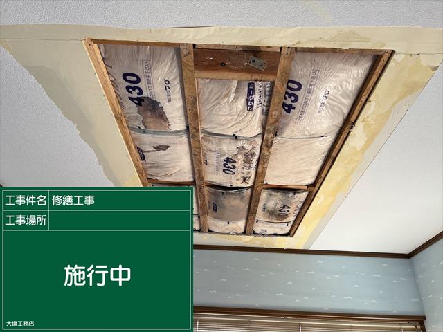 石岡市の雨漏り補修の現場、天井の張替えです。