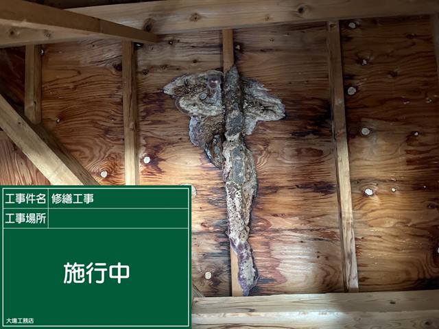 室内に雨水が滴って水溜まりが出来てしまうような状態ではなかったのが不幸中の幸いです。