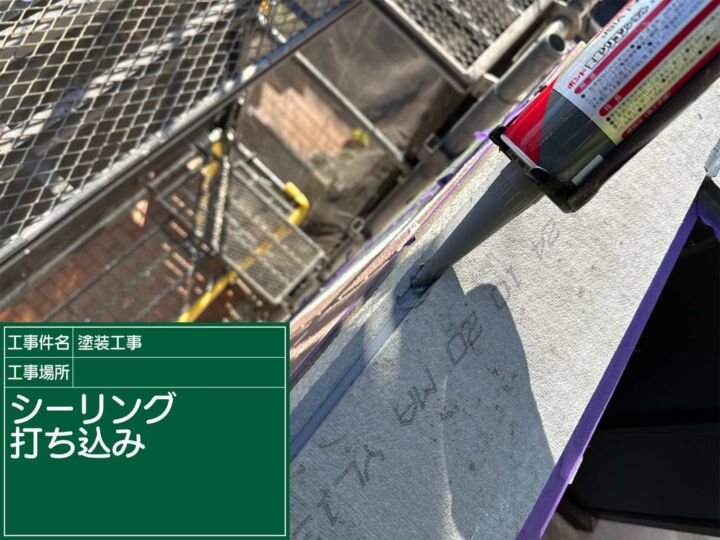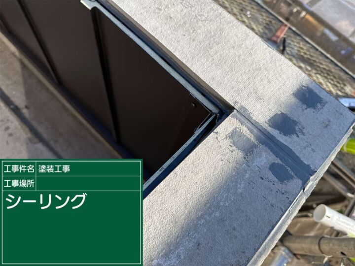 笠木の部分は、ビス打ちあとから雨水が浸入するとそれが再び雨漏りの原因になってしまうので、防水のためにシーリングを施工していきます☔