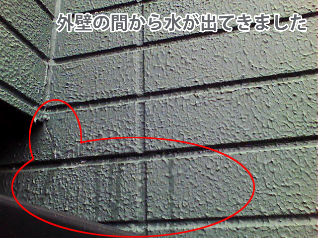 散水調査をしてみると、外壁から水があふれてくる場所がありました‼️