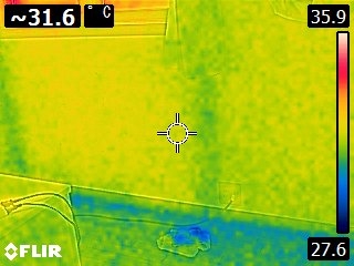実際室内をサーモカメラで見てみると、雨染みだろうという場所が青く写っていました📸
