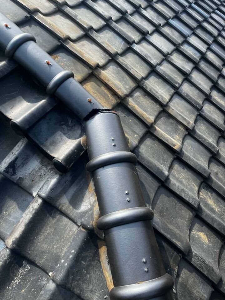 この棟瓦の補修によって雨水の滞水で起きていた雨漏りも解決です‼️
