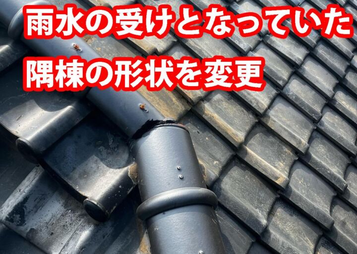 隅棟に切れ目がなく、赤丸⭕️の部分で雨水を堰き止めるかたちになっていました☔