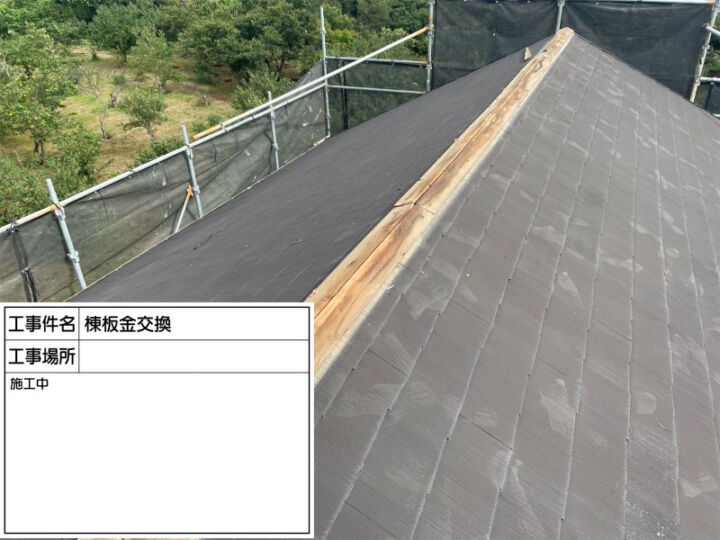 新しい棟板金を設置して、棟板金と貫板の交換が完了しました!