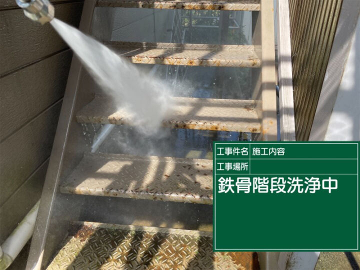 鉄骨階段の洗浄