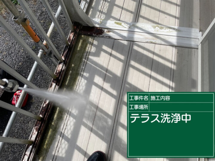 ベランダテラスも洗っていきます。