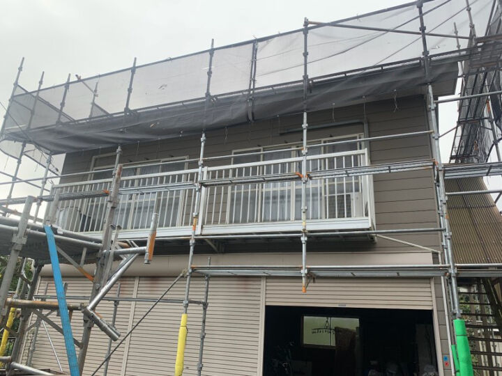 足場の設置と解体は、安全で塗装に適した足場を建ててくれる専門業者に委託しておこなっています。