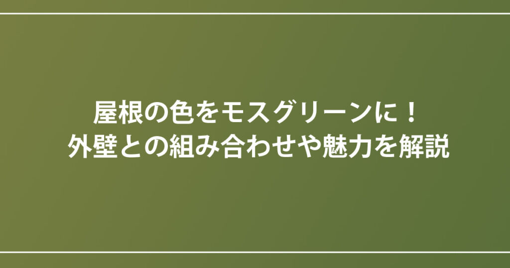 屋根の色をモスグリーンに!外壁との組み合わせや魅力を解説