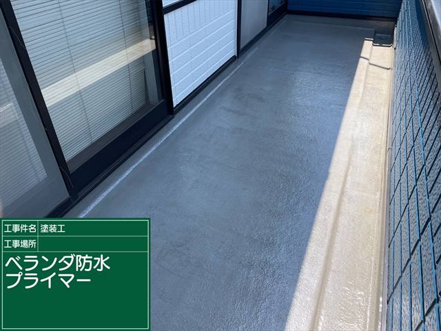 石岡市のベランダ、プライマーの塗布が完了しました。
