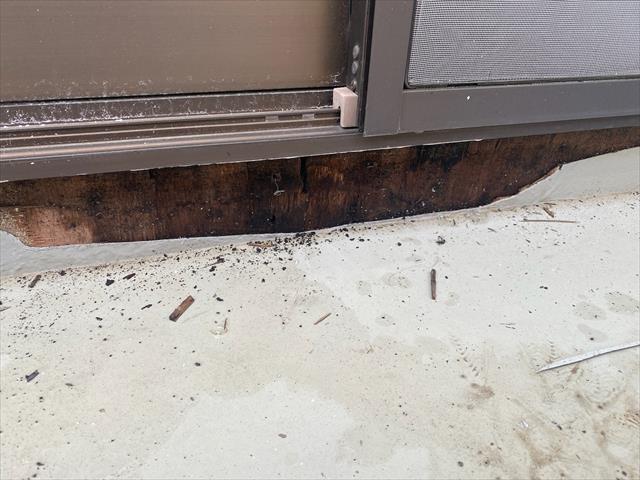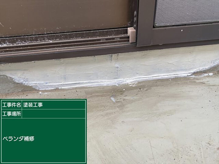 かすみがうら市雨漏り被害現場の施工事例、ベランダの雨漏り部分補修の様子です。