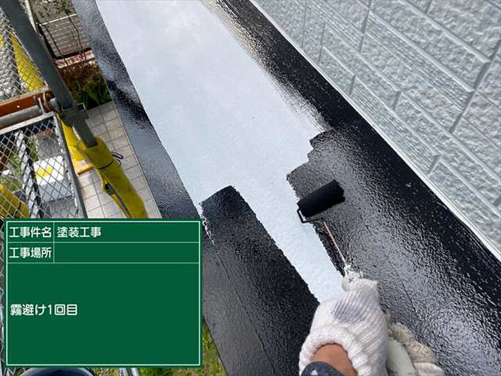 かすみがうら市の霧除け塗装、中塗り塗装をおこないました。