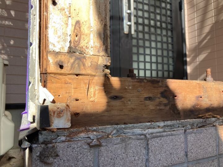 雨漏りによって玄関周りが腐食してしまっていたので、柱の取り替えなど大規模な工事を行うことになりました‼️