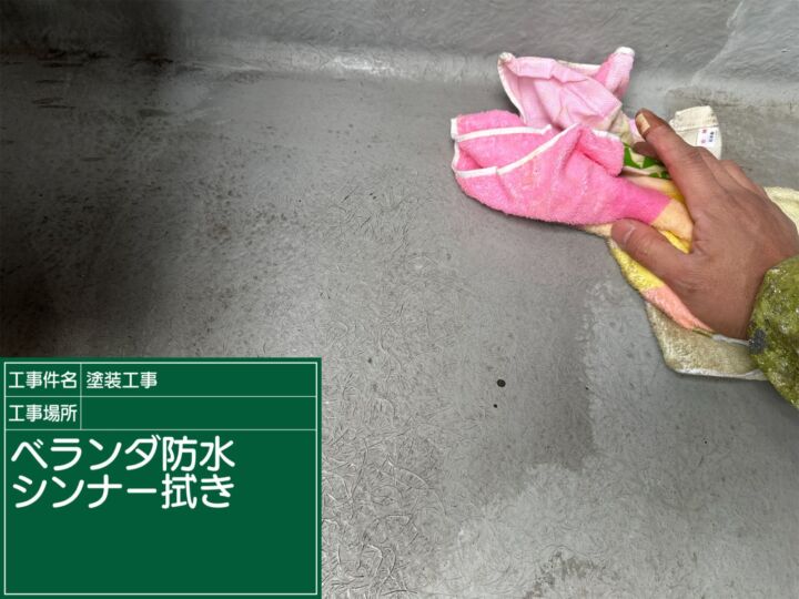 シンナーやアセトンのような揮発系溶剤で表面を拭いていくことで、防水塗膜の余分な油脂を落としていけます‼️