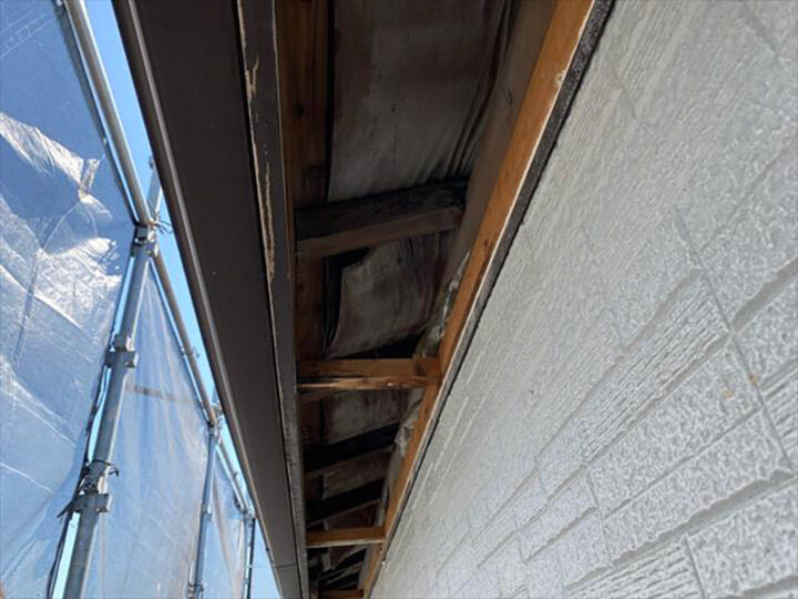 写真が軒天を撤去した状態です。