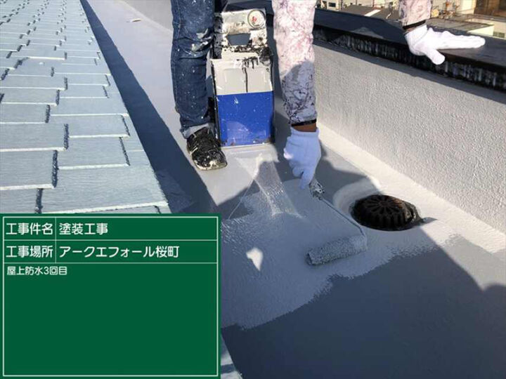 防水材の上にそれを保護する防水材をさらに塗装します。