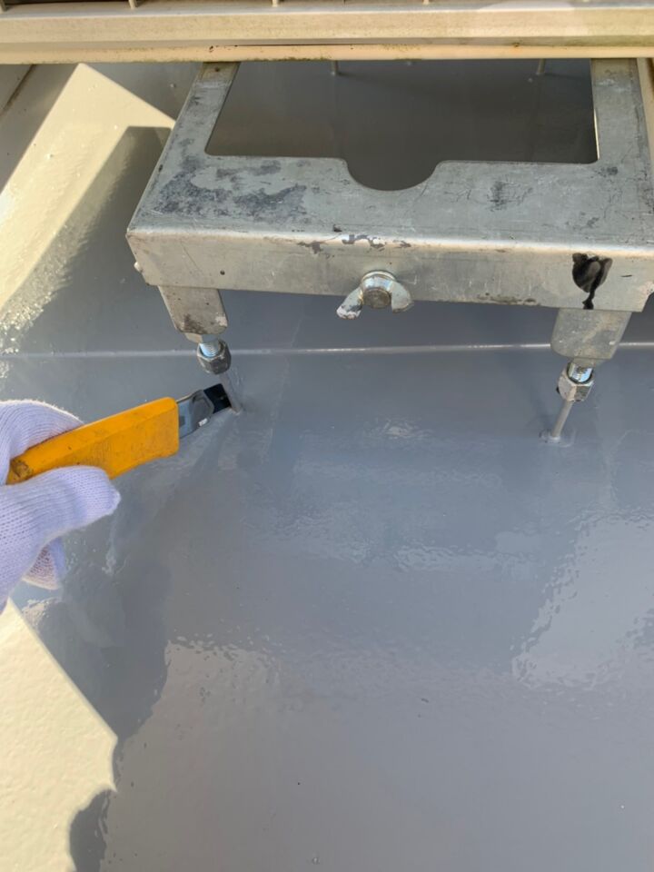 今回、現状のシート防水にプラスしてウレタン防水をする、複合防水をおこなうことになりました。