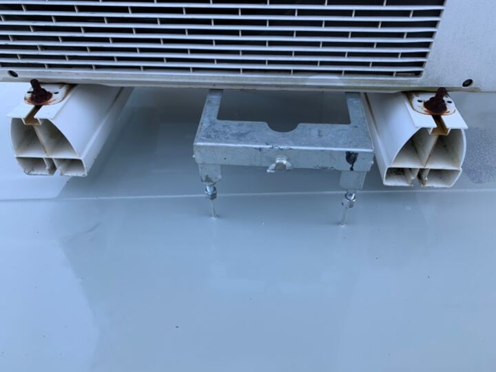 塗装前にエアコンの室外機をあげて、室外機の下も施工できるようにしています。