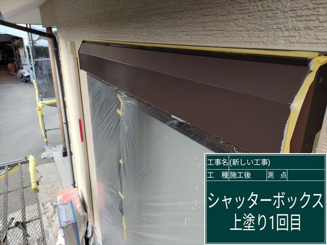 石岡市の現場、シャッターボックスの塗装が完了しました。
