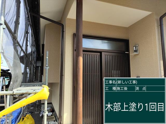 石岡市の木柱、1回目のキシラデコール塗装が完了しました。