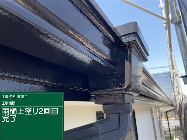 石岡市の築25年の家の雨樋塗装、上塗り2回目です。