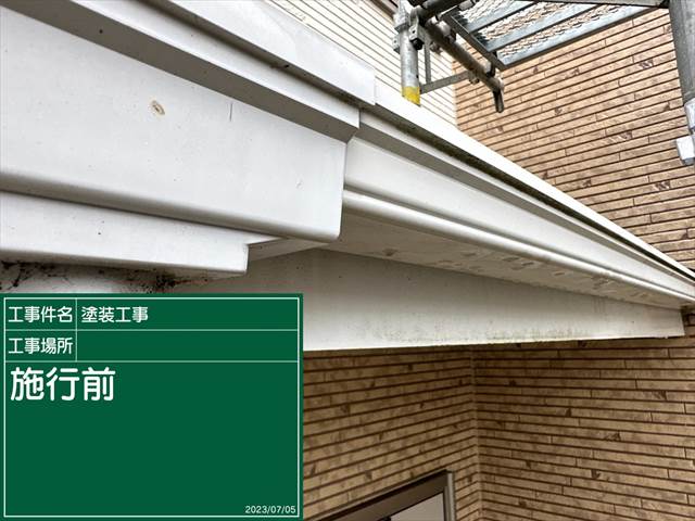 現地調査時には黒カビや雨垂れのあとがあった雨樋、