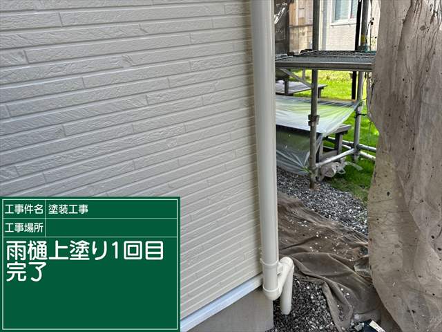 横樋の塗装は破風板の塗装と同じタイミングでおこないますが、縦樋は外壁塗装が終わったタイミングでおこないます。