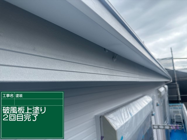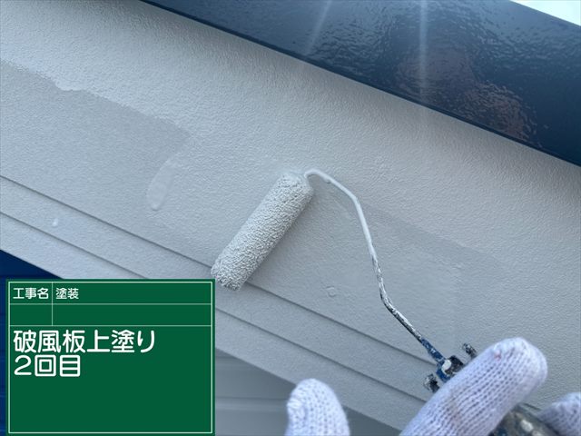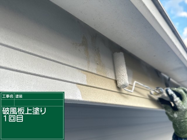 石岡市の破風板塗装、上塗り1回目が完了です。