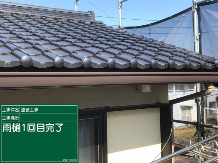 石岡市、無機UVコートを使用して雨樋塗装工事を行いました。