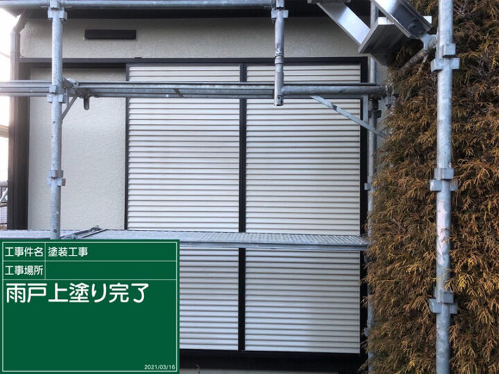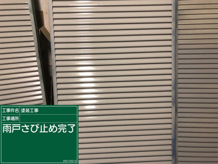 塗装後、しっかりと乾燥させてから雨戸を戻し、雨戸の塗装工事の完了です。