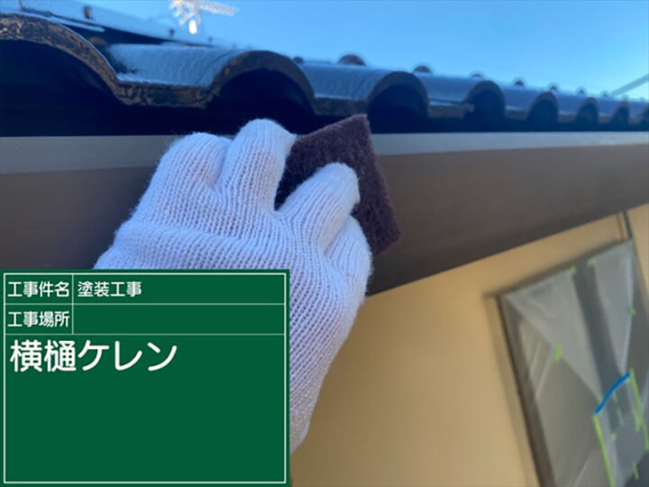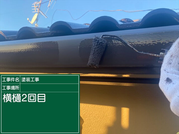 次に横樋の塗装をしていきます。横樋とは、屋根と水平に取り付けられている雨樋のことです。