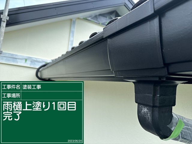 かすみがうら市雨樋塗装、1回目の上塗りが完了しました!