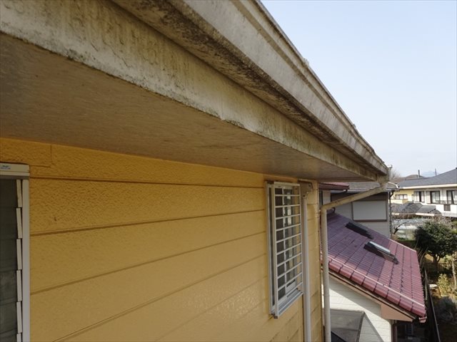 雨樋から破風板に軒天と、黒い汚れがついていますね。