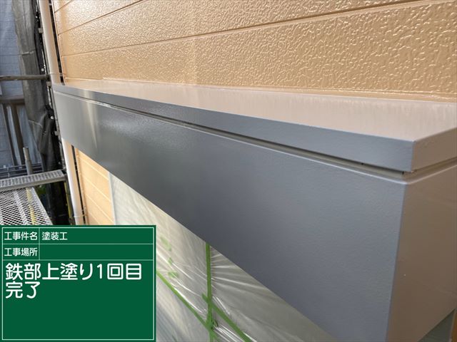 かすみがうら市の鉄部塗装、上塗り2回目です。2回目の塗装で塗膜に厚みが出てきます。
