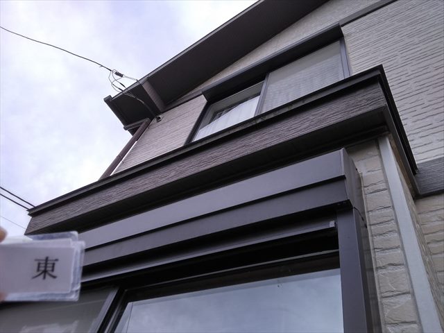 かすみがうら市の外壁塗装現場、築20年のシャッターボックスを塗装していきます。
