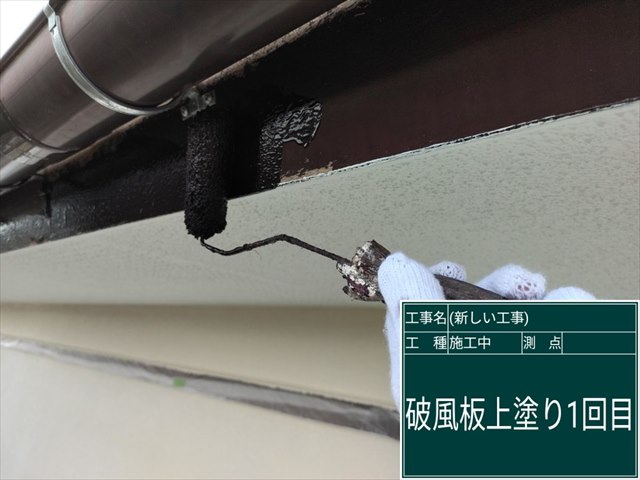かすみがうら市屋根塗装現場では、破風板は上塗りのみをおこないました。