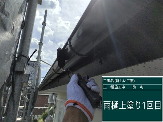 雨樋には縦樋や横樋がありますが、今回は横樋の塗装の様子です。