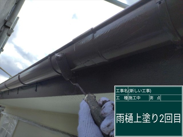 雨樋も破風板同様に、上塗りを2回おこないます。