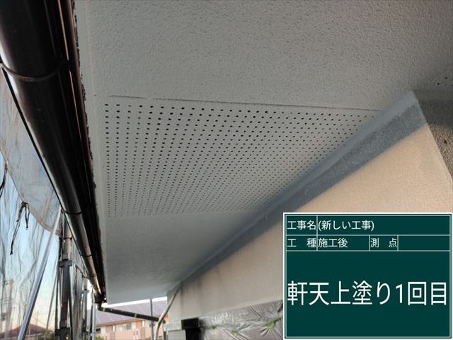 軒天塗装の上塗り1回目です。