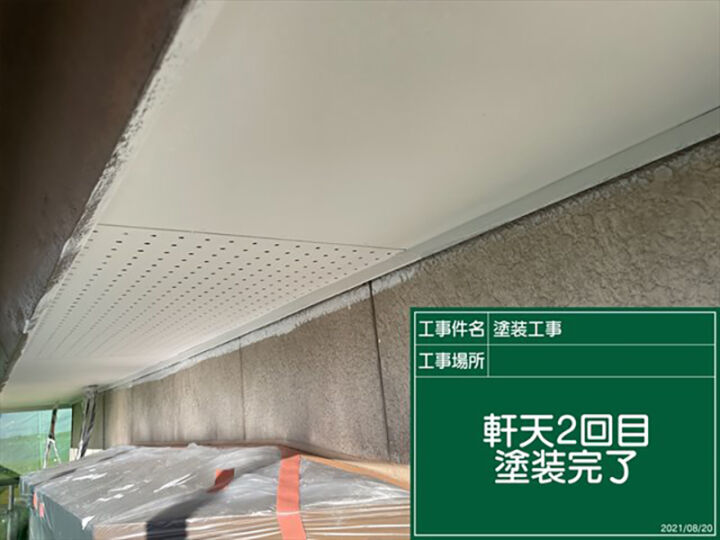 重ね塗りすることで、軒天を守る充分な厚みの塗膜が完成しました。
