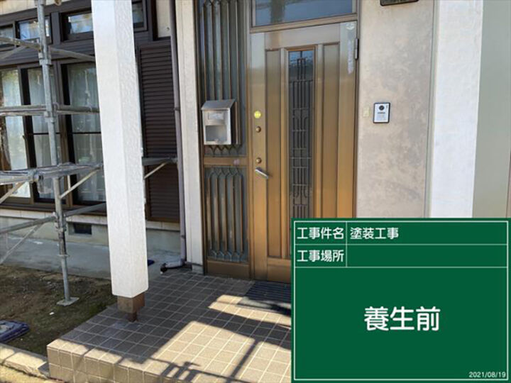 玄関周りの養生、養生前と後の様子です。